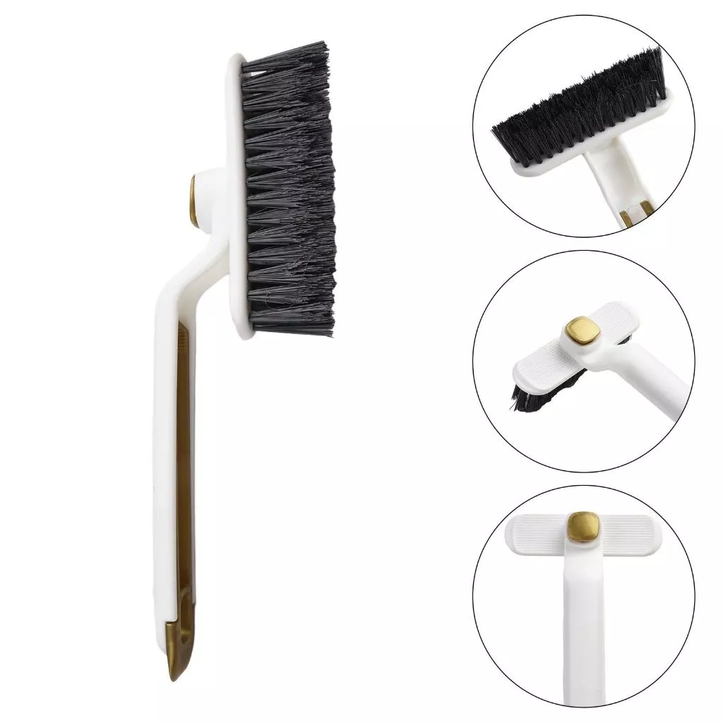 Bulu Kokoh : Sikat dilengkapi dengan bulu yang tahan lama dan kokoh yang secara efektif menghilangkan debu, kotoran, dan kotoran dari celahnya. Bulu-bulunya cukup kuat untuk mengatasi kotoran yang membandel sekaligus lembut pada permukaan untuk mencegah goresan.