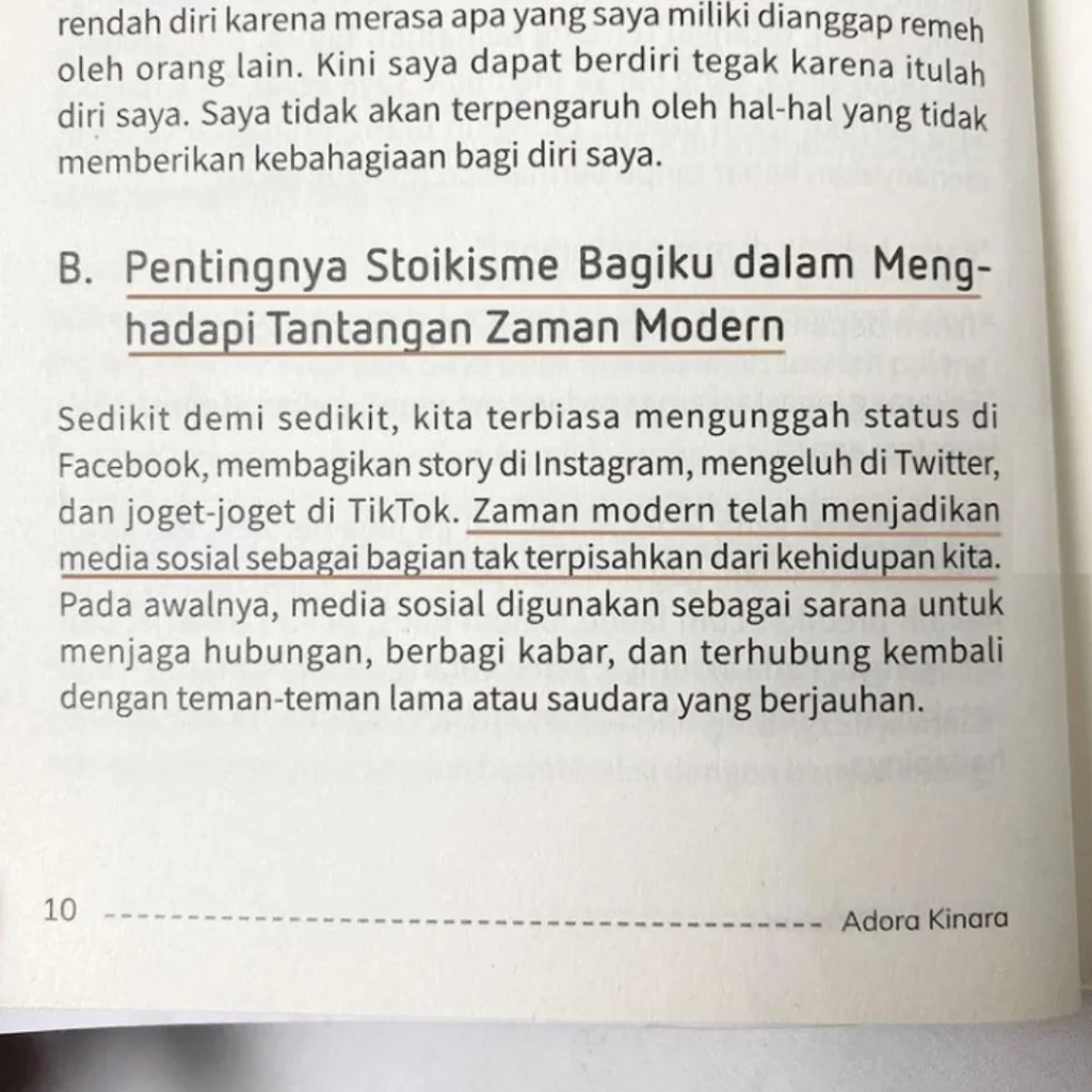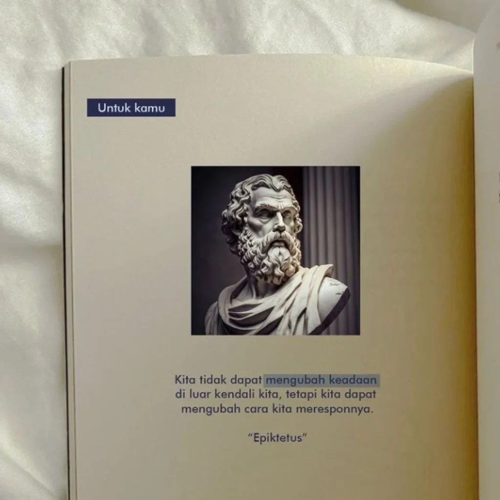Dalam dunia yang semakin kacau dan kompleks ini, mungkin saatnya kita kembali menghadap ke arah kebijaksanaan zaman dulu untuk menemukan kedamaian dan kebahagiaan sejati. Dalam buku yang inspiratif ini, penulis Adora Kinara membimbing pembaca melalui perjalanan menuju staikisme sebuah filosofi hidup kuno yang relavan dan sangat bermanfaat dalam mengatasi tantangan zaman modern.