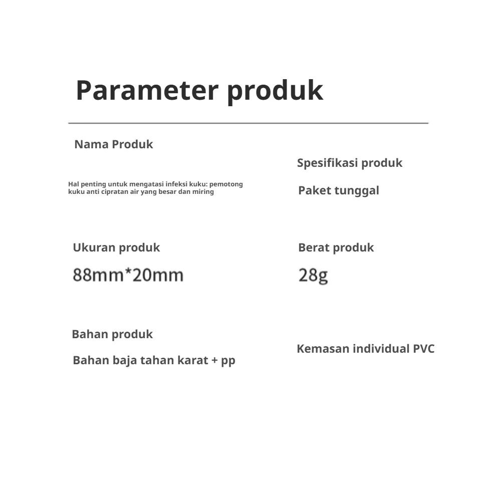 Hadirilah Gunting Kuku Miring Anti-Cipratan Rahang Lebar – revolusi dalam perawatan kuku Anda! Dengan desain miring yang presisi dan fitur anti-cipratan yang inovatif, pengalaman memotong kuku tidak pernah semudah dan sebersih ini. Rahang lebar yang mampu menjangkau kuku tebal sekalipun, material stainless steel berkualitas tinggi yang tajam dan awet, serta gagang ergonomis anti-slip yang nyaman digenggam. Ucapkan selamat tinggal pada kuku berserakan dan jari yang pegal! Dapatkan potongan kuku yang rapi, bersih, dan nyaman dengan Gunting Kuku Miring Anti-Cipratan Rahang Lebar