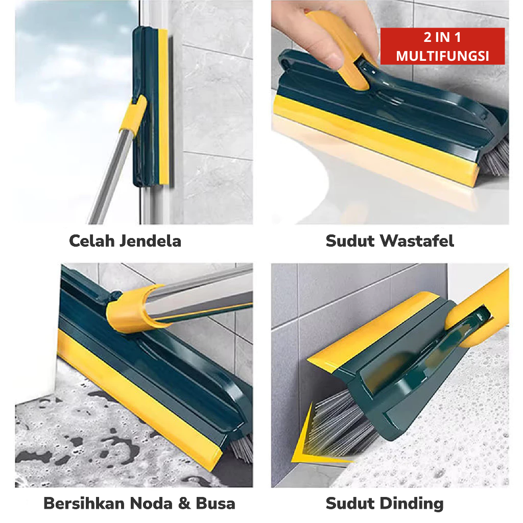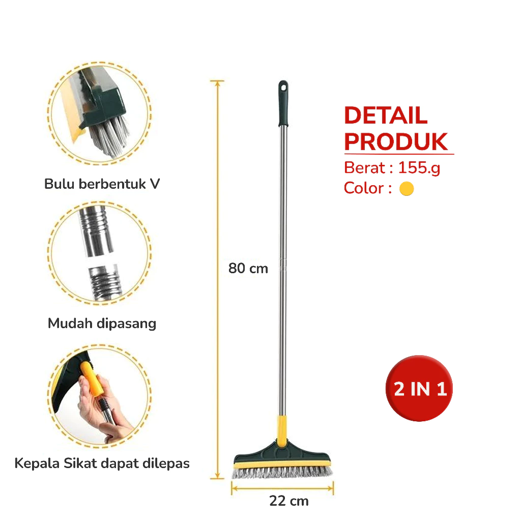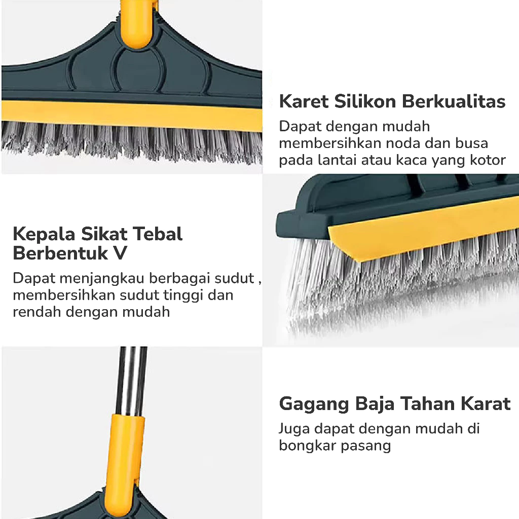 Dilengkapi dengan bahan gagang stainless kuat dan ringan, serta bulu sikat yang kokoh tapi tidak merusak lantai.